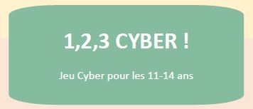 Accueil de 1,2,3 CYBER ! Jeu Cyber pour les 11-14 ans en lettres blanches sur fond vert.