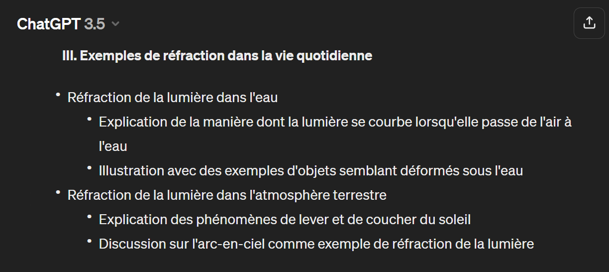 Je souhaite générer un plan de cours intitulé : « La réfraction de la lumière ».