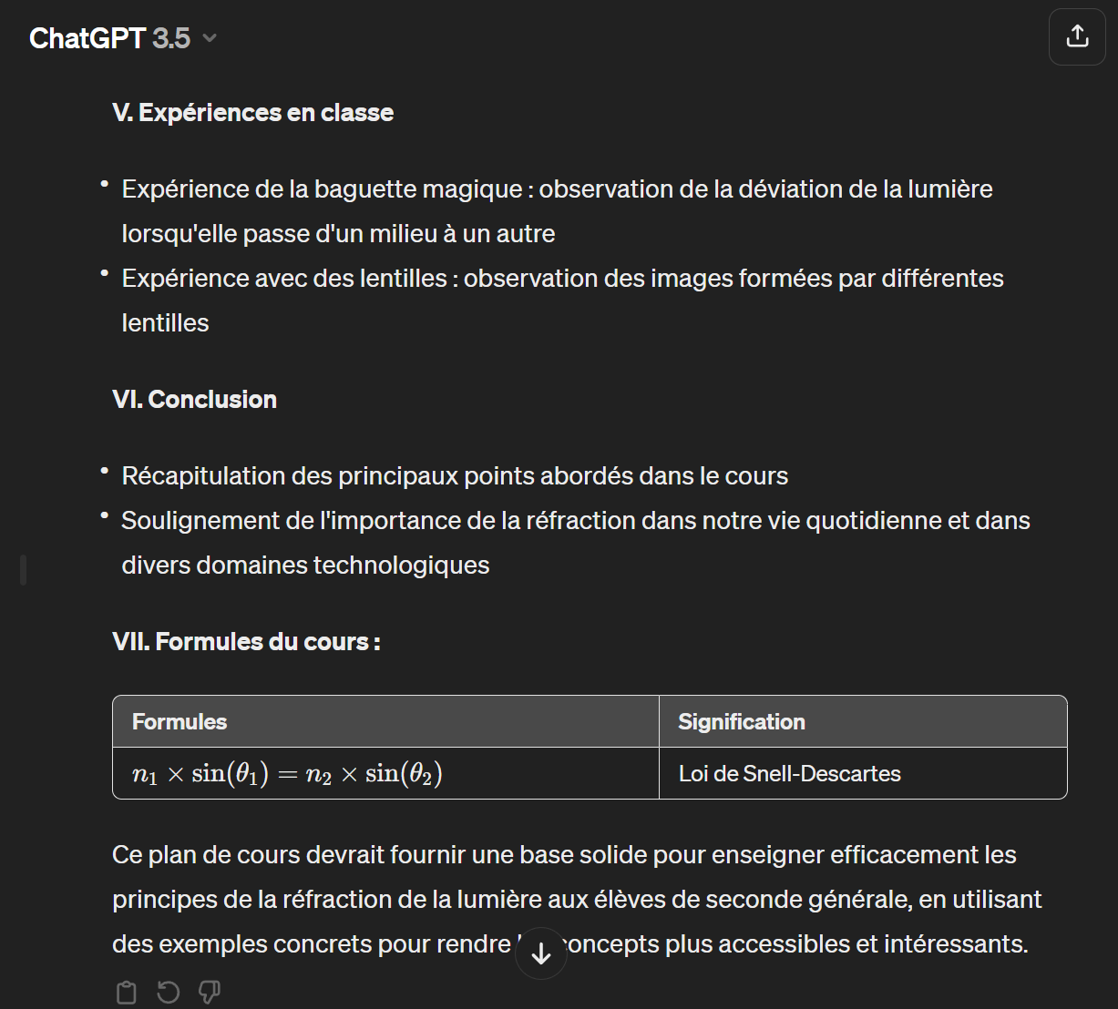 Ce plan de cours devrait fournir une base solide pour enseigner efficacement les principes de la réfraction de la lumière aux élèves de seconde générale, en utilisant des exemples concrets pour rendre les concepts plus accessibles et intéressants.