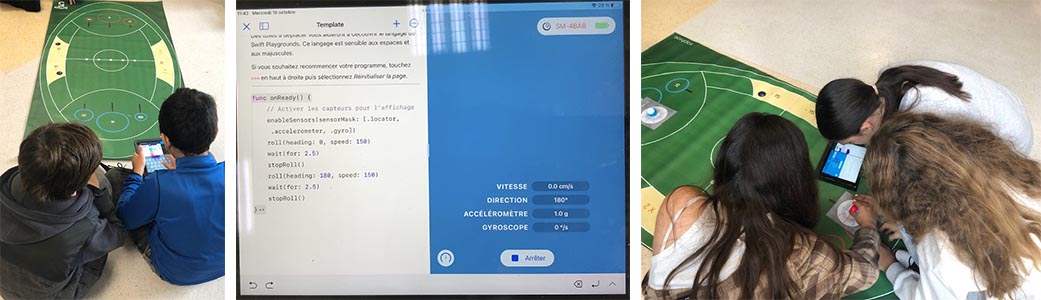 Les élèves devaient préparer leur code en amont puis le retranscrire sur l’application Swift Playgrounds, celle-ci était appairée à leur Sphéro-mini qui attendait les commandes pour "voler" sur le tapis !