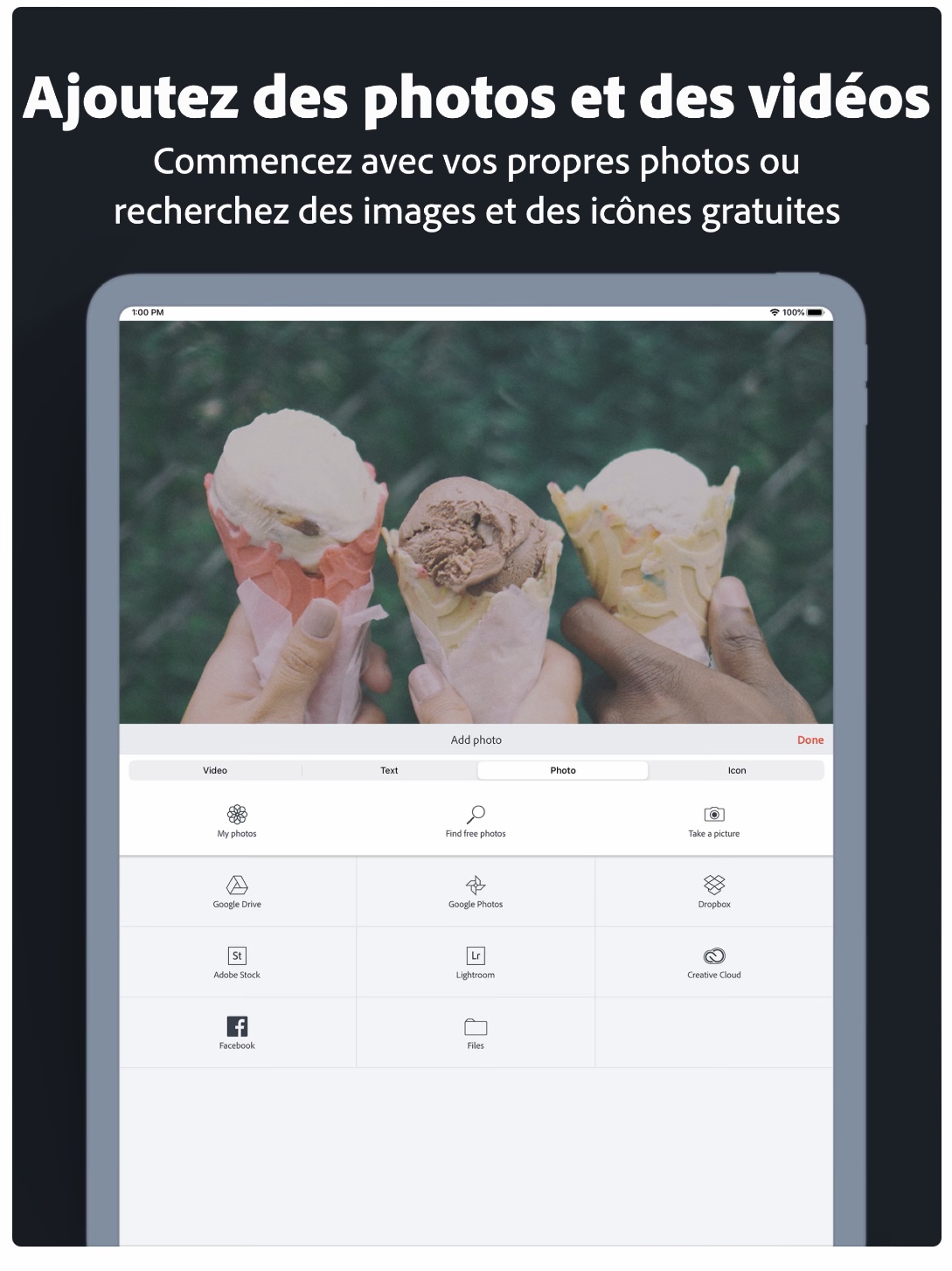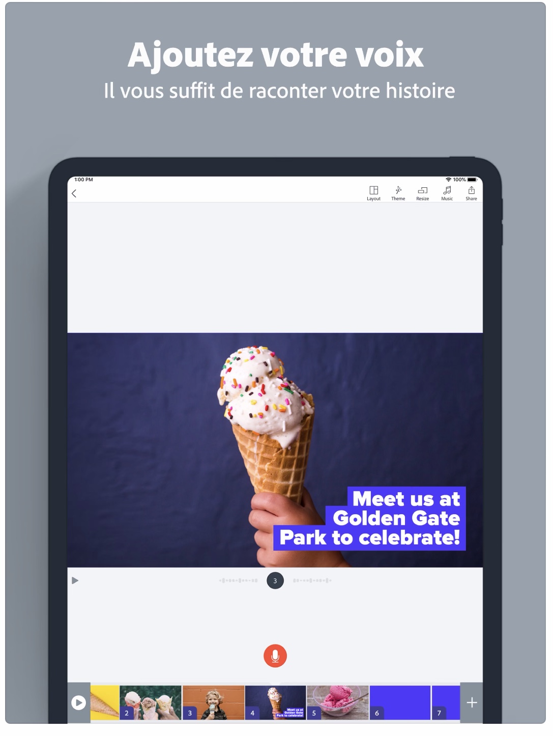 Adobe Spark Video est une application qui permet de créer très facilement des présentations comme des capsules vidéo. Il est possible d’enregistrer des commentaires sonores pour chaque diapositive.