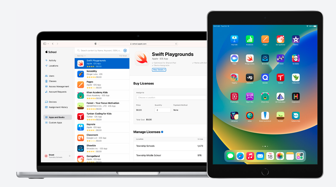 Apple School Manager (ASM) est un site qui permet aux établissements équipés de tablettes iPad de gérer :