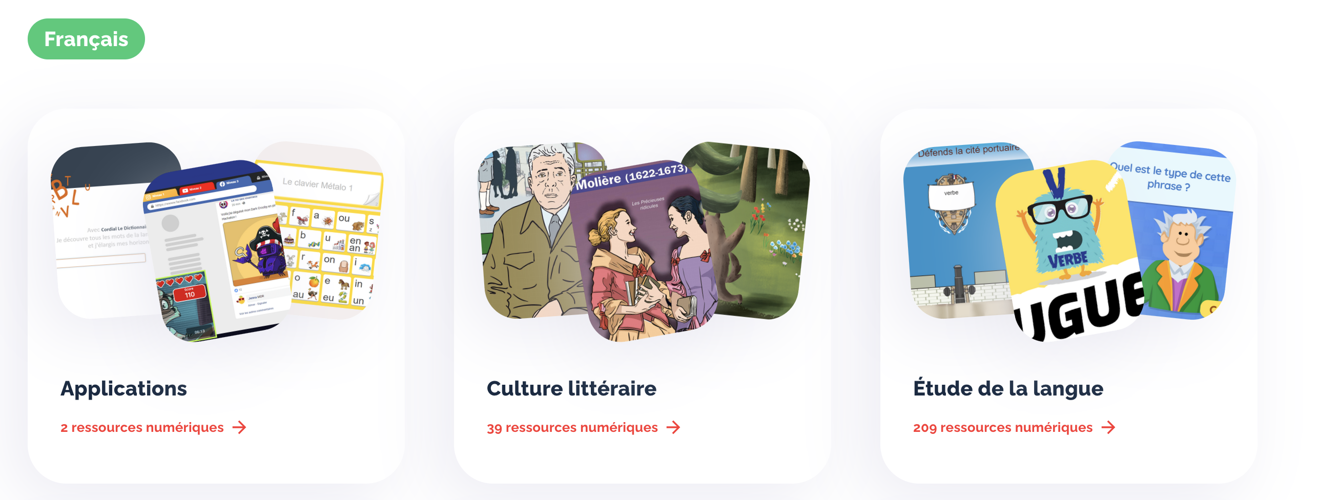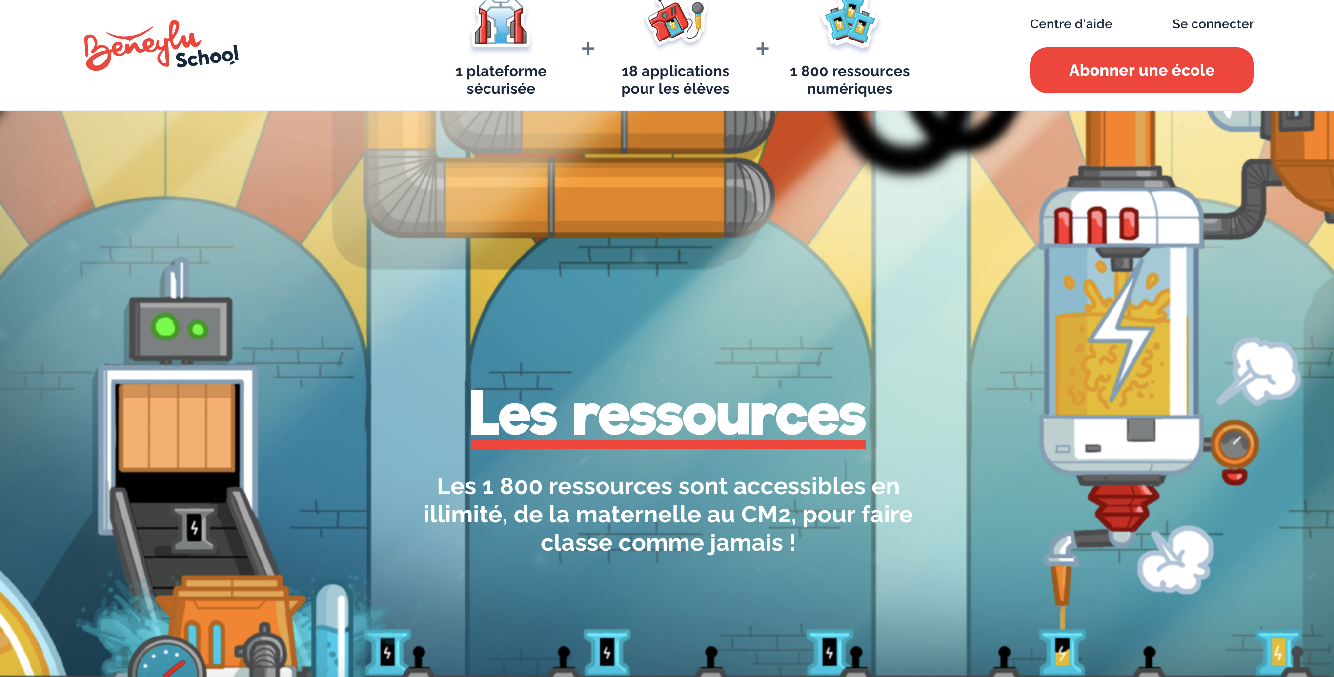 Beneylu School, l’ENT du département du Val D’Oise propose 1 800 ressources numériques pour le primaire, fournies par 19 éditeurs en un seul abonnement. Les ressources sont classées par domaine d’activités comme le français, l’histoire, les mathématiques, l’EPS...