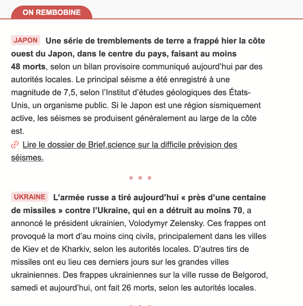Ce document présente deux brèves d’actualité sur des événements récents au Japon et en Ukraine, dans un format synthétique.