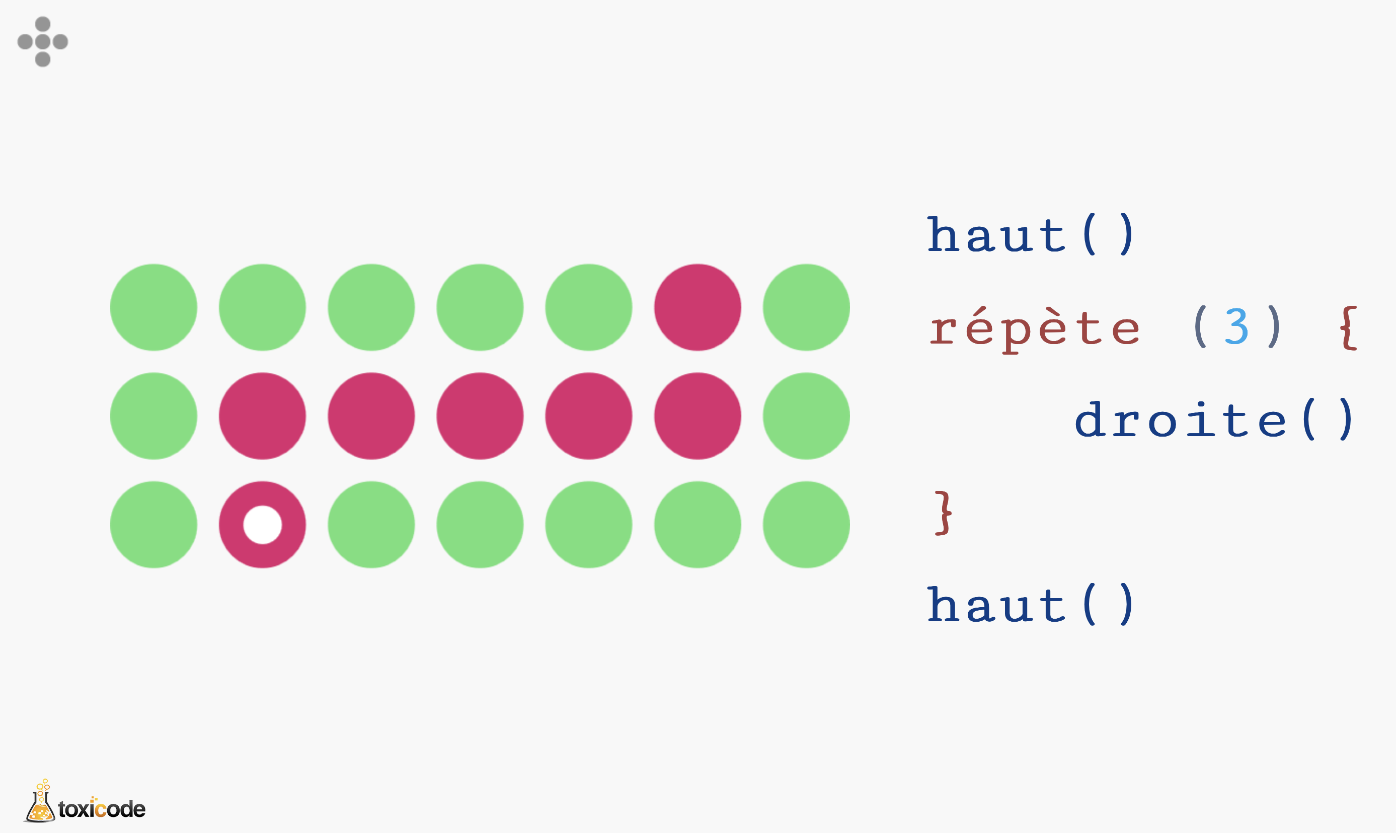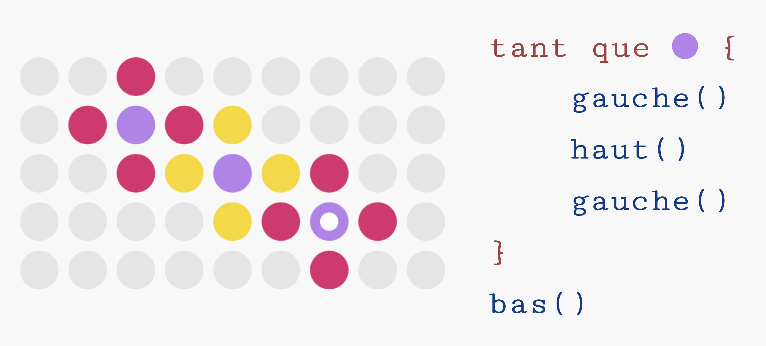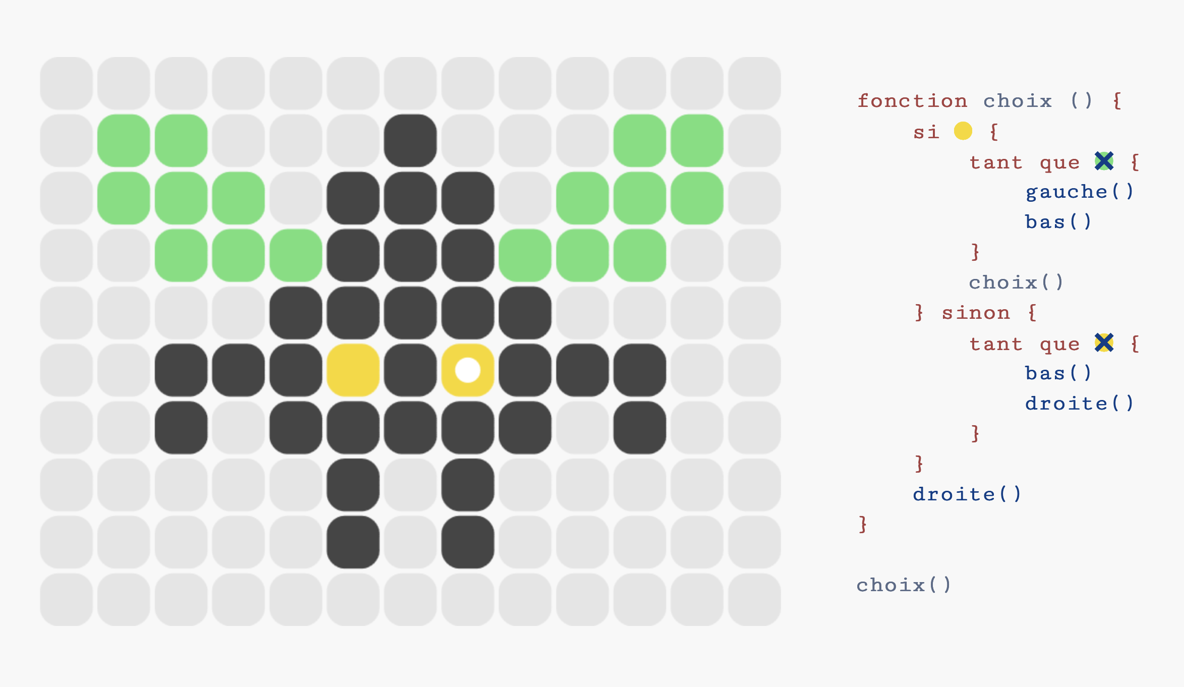 Il n’y a aucune consigne ni explication, tout se fait sur le mode découverte. Si les élèves ont déjà des notions de programmation, le défi leur servira d’entraînement, en s’appuyant sur leurs connaissances.