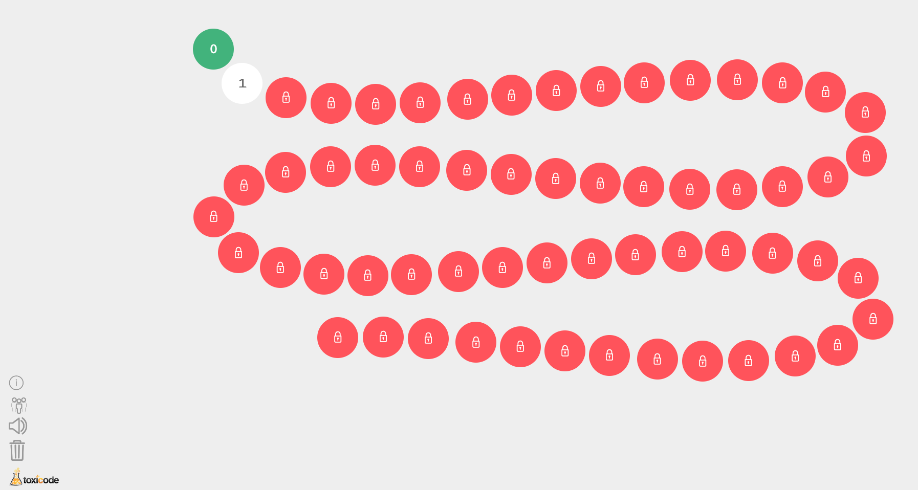 Il y a à ce jour 60 niveaux (de 0 à 59), tous réalisables par un néophyte : la difficulté monte progressivement, le défi est très prenant, la mécanique gamifiée fonctionne très bien sur les adolescents comme les adultes.