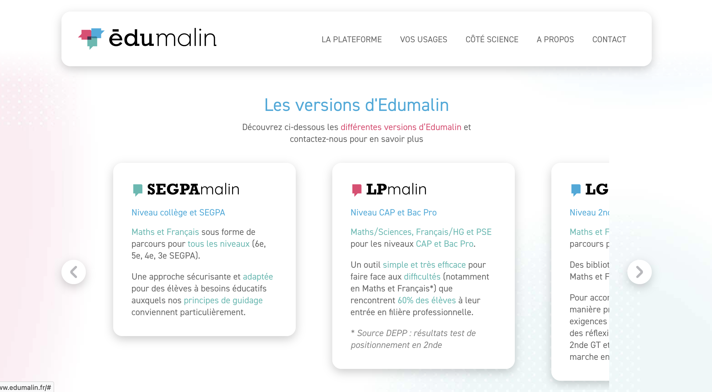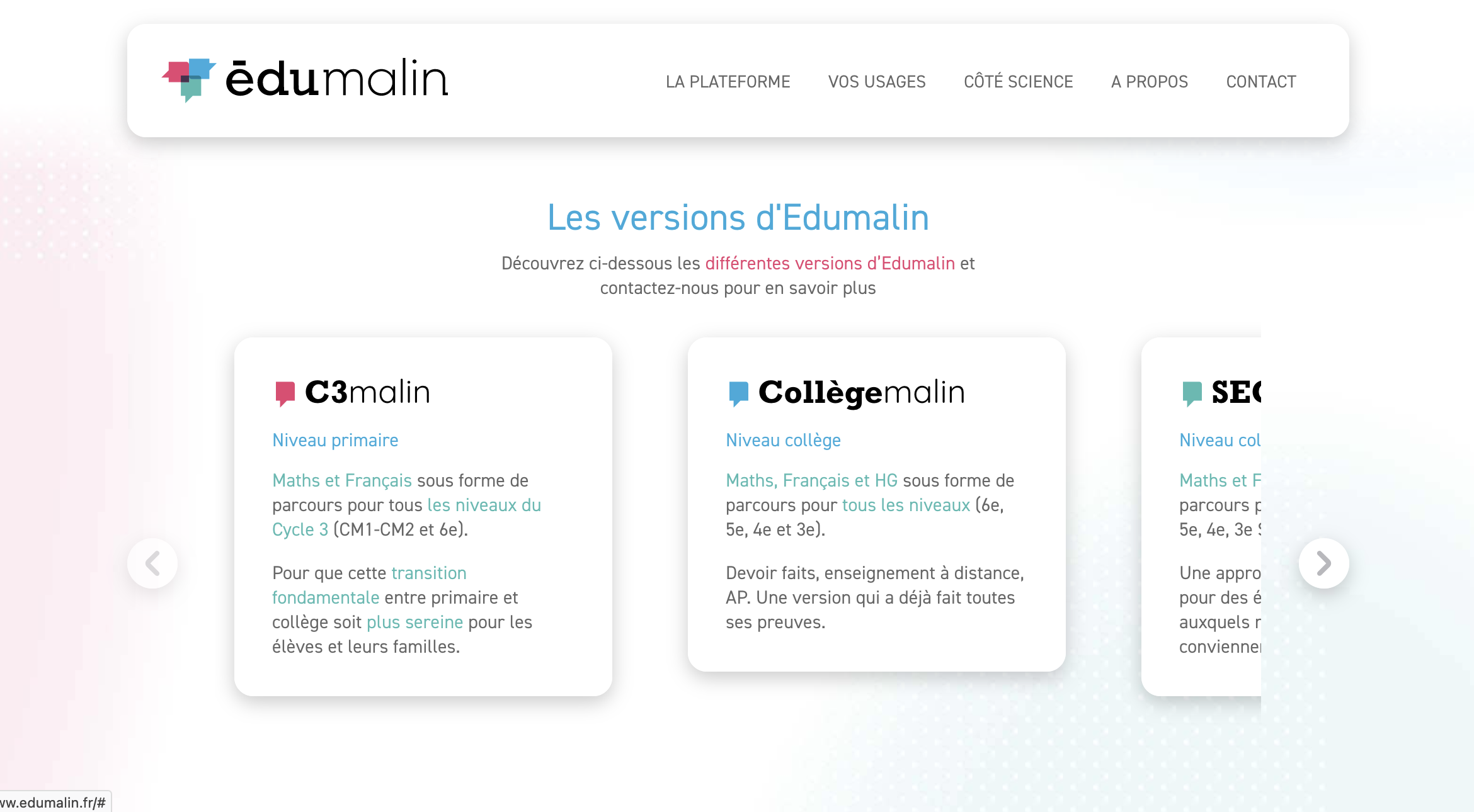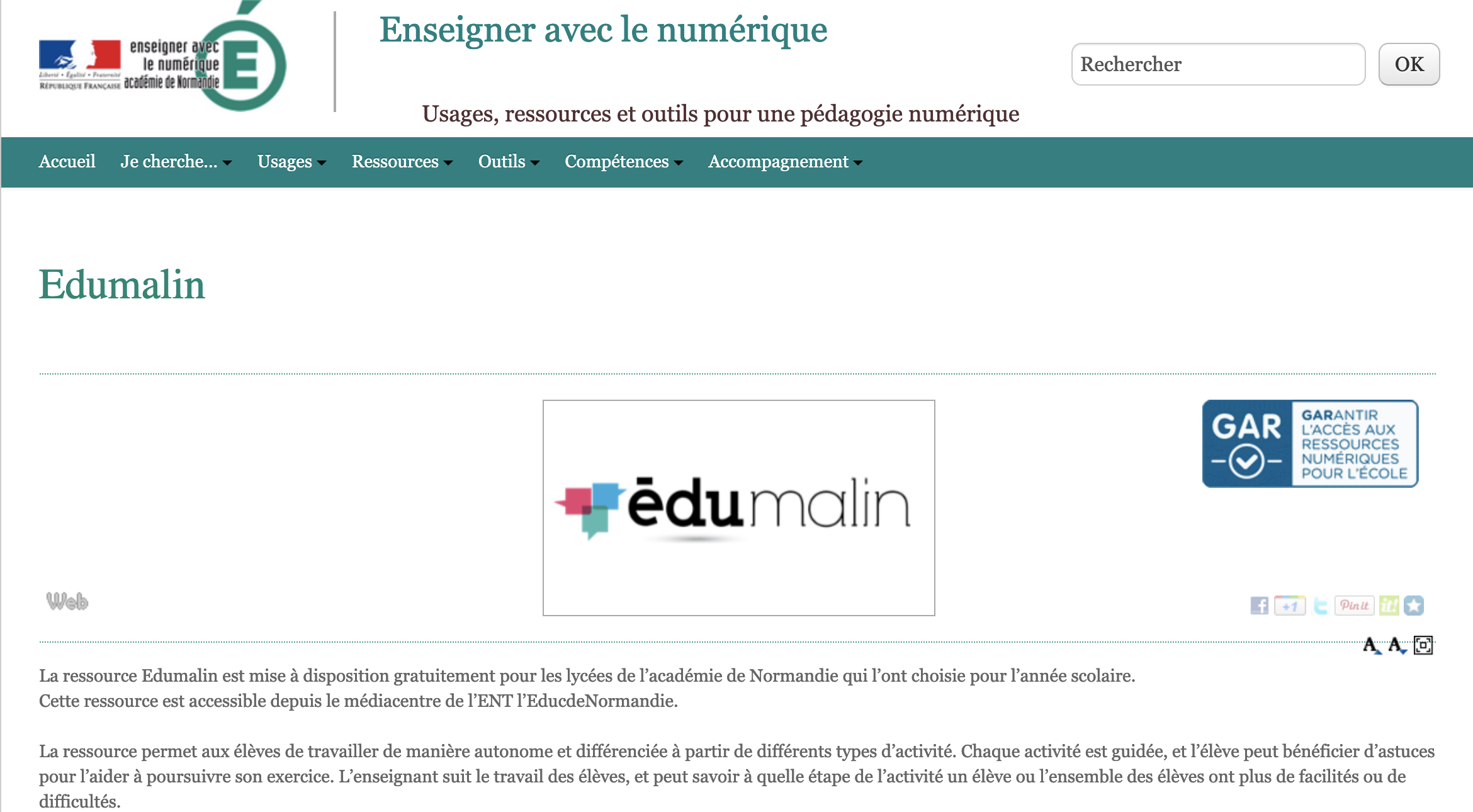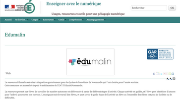 Édumalin est une plateforme qui peut-être disponible via le GAR. Elle permet aux enseignants de disposer d’une bibliothèque de ressources prêtes à l’emploi, de modules et parcours personnalisables, d’un suivi et d’outils de création de contenus.