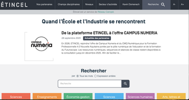 La plateforme ÉTINCEL, développée par Réseau Canopé dans le cadre du projet ÉNI – École, Numérique et Industrie, a pour objectif de rapprocher le monde éducatif et le monde industriel. Elle propose un large éventail de ressources numériques pédagogiques, co-construites avec des partenaires issus de l’industrie, pour permettre aux enseignants d’intégrer la culture scientifique, technologique et industrielle dans leurs cours.