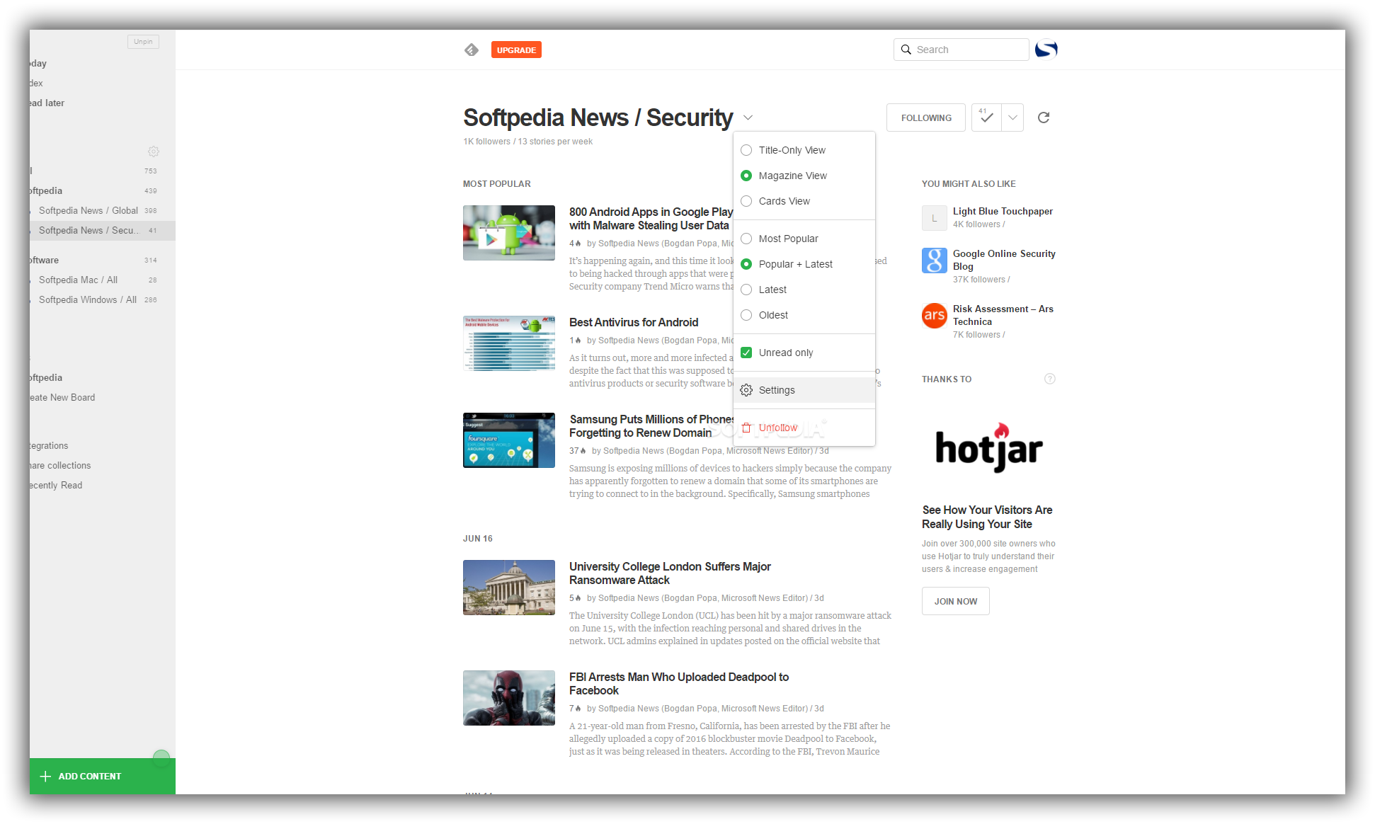 Agrégateur de contenus de vos sites, blogs, chaînes youtube et flux RSS favoris.