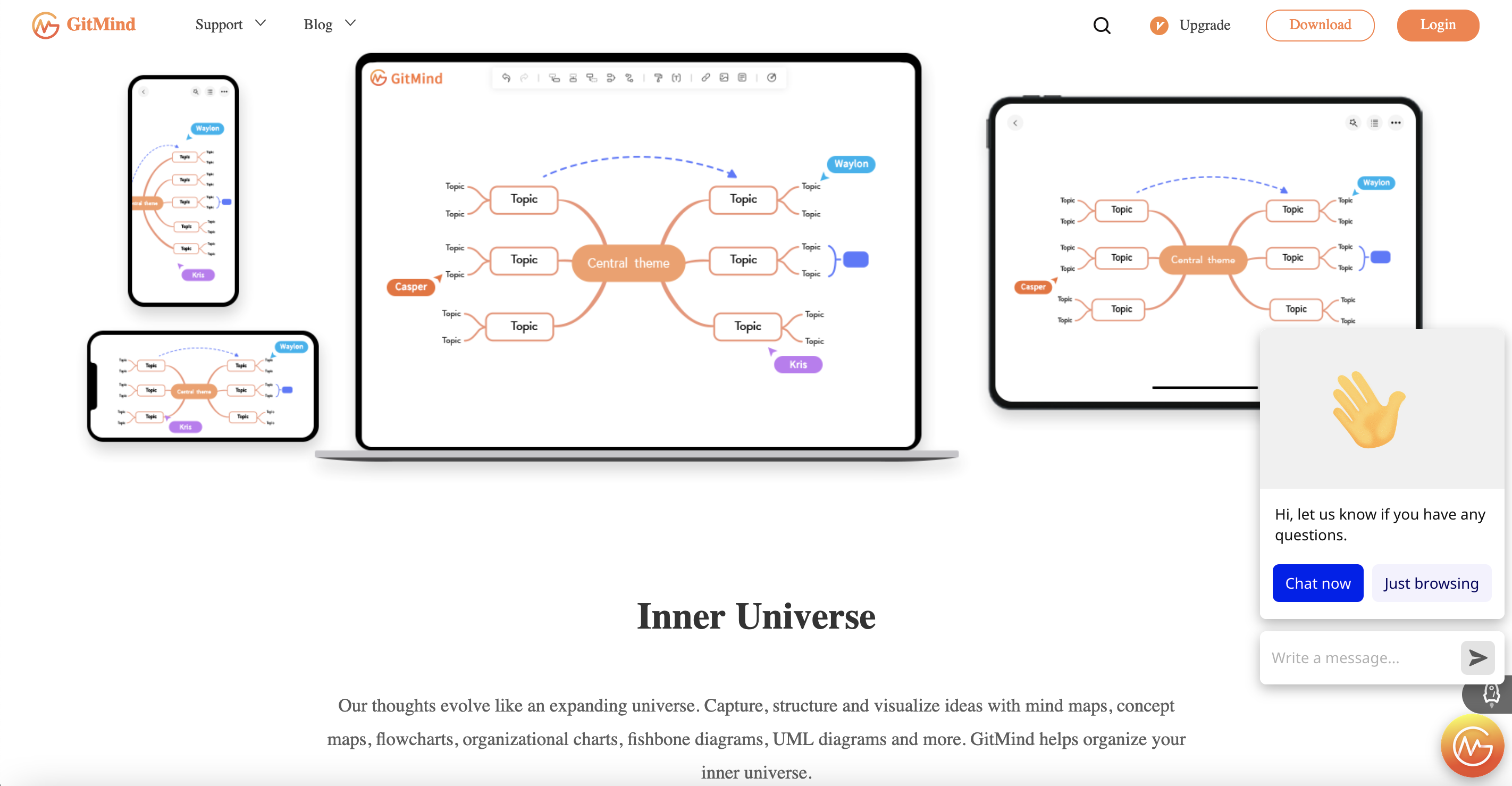 GitMind est une application de création de cartes heuristiques et de brainstorming. Elle permet la création de cartes individuelles ou collaboratives.