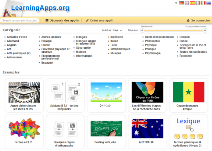 LearningApps est un créateur d’exercices en ligne gratuit. Développé par la Haute Ecole Pédagogique de Berne et accessible en cinq langues, ce site internet va vous permettre de créer vos propres exercices interactifs ou de choisir parmi ceux déjà existants en cliquant sur l’image ci-dessous :