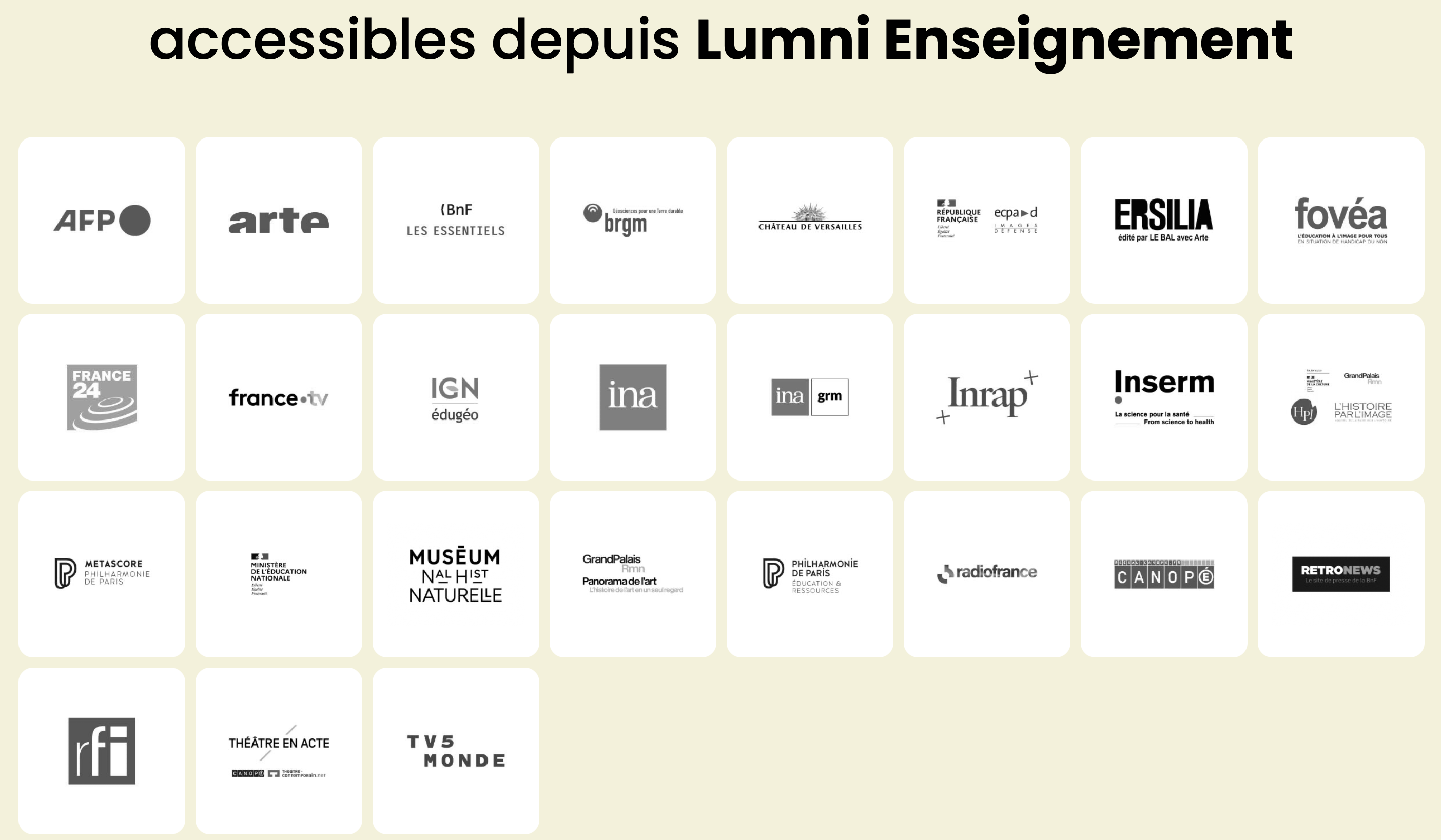 Les acteurs de l’audiovisuel public, les établissements culturels et scientifiques partenaires, le ministère de l’Education nationale, le ministère de la Culture, La ligue de l’enseignement, Canopé, le CLEMI s’engagent dans une offre unique au service de l’éducation.