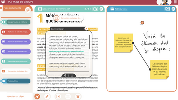 Durant le cours, ils utilisent un écran interactif pour superviser le travail des élèves. Sur les ressources proposées, les élèves peuvent annoter, rédiger des commentaires et construire des documents.