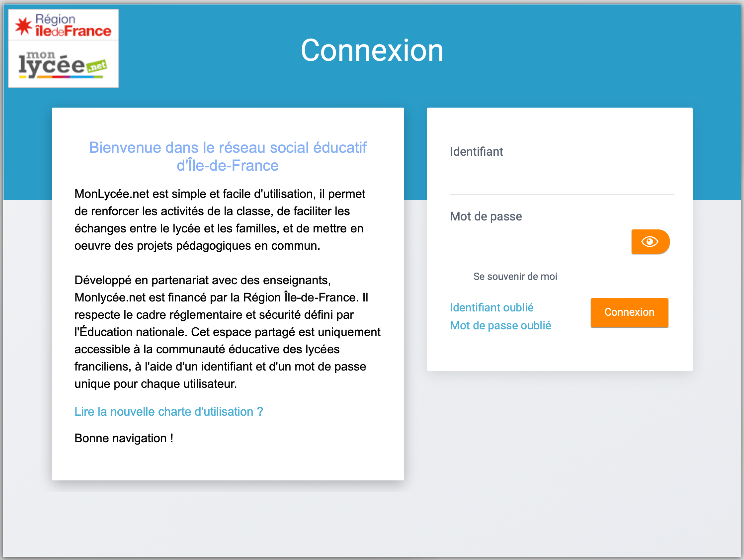 Monlycée.net est l’espace numérique de travail des lycées franciliens. Il est déployé par le conseil régional d’Île-de-france dans les 475 lycées, cités scolaires régionales, EREA, ERPD.