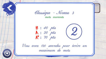 - le mode classique : écrire le plus de mots correctement en 120 secondes.