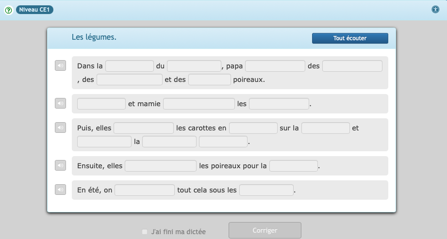 Pour chaque niveau du CE1 au CM2, les 10 dernières dictées postées sont disponibles en autonomie.