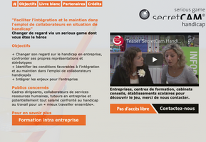 SecretCAM est une suite de quatre jeux sérieux réalisée par le CNAM Pays de la Loire qui ciblent surtout les lycées.