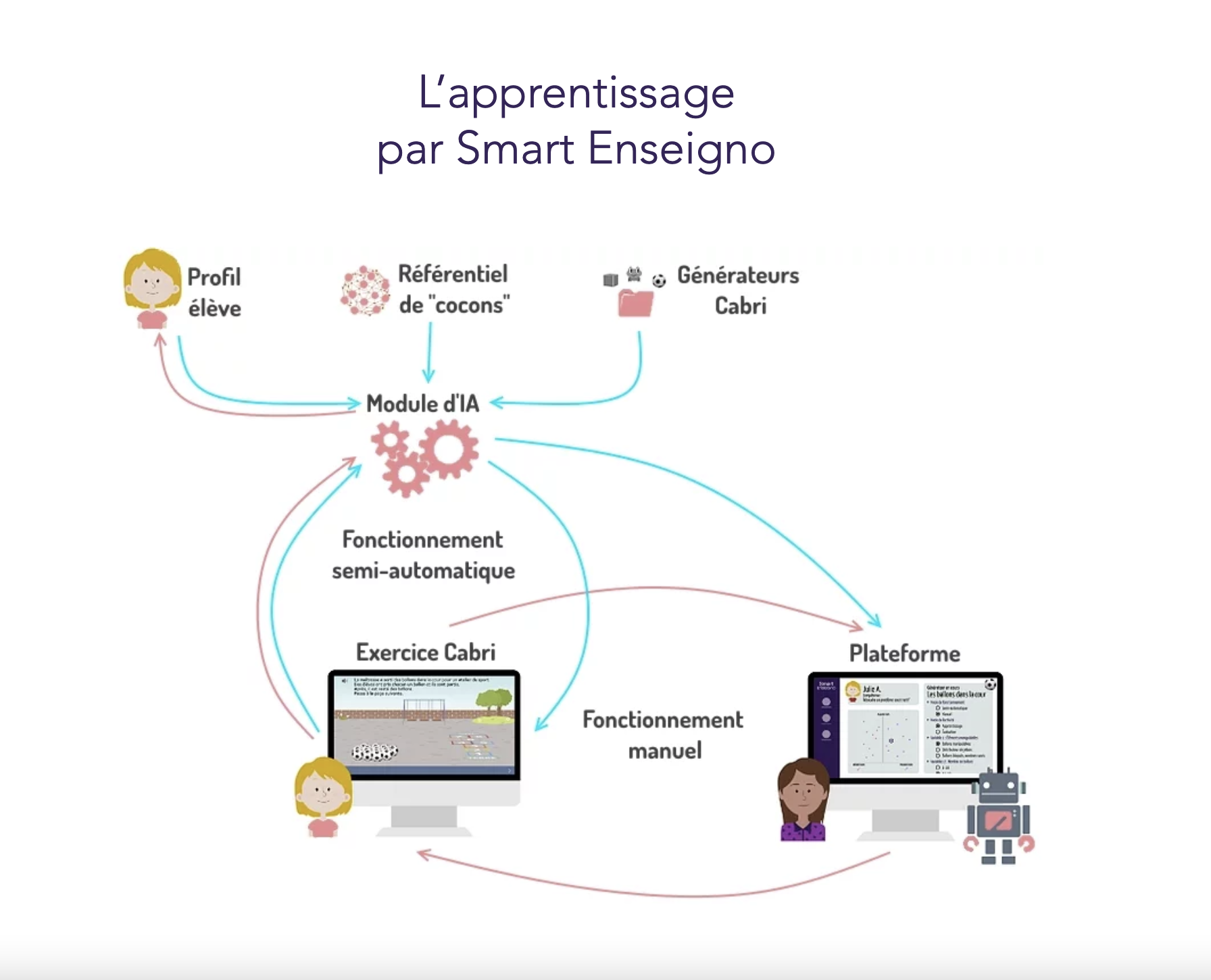 Destiné aux classes de CP, CE1 et CE2, SmartEnseigno, lauréat du P2IA, propose un corpus de ressources mathématiques riche et évolutif.