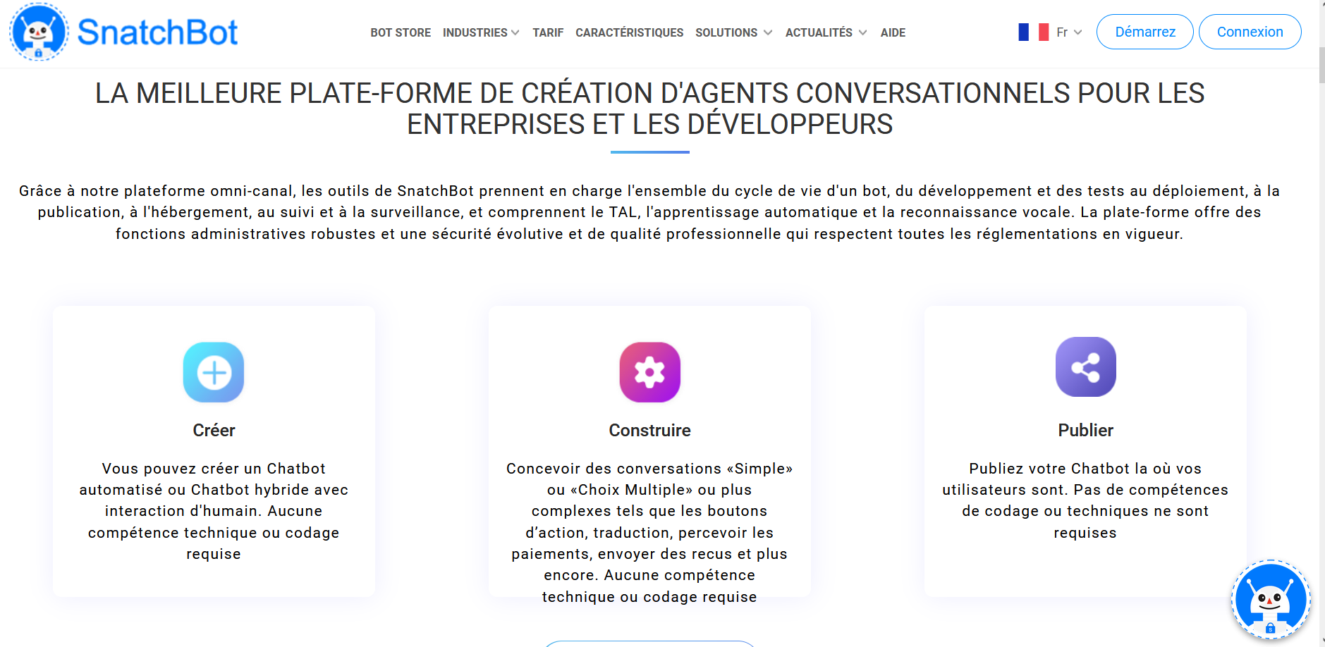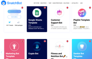 La Plateforme SnatchBot élimine la complexité de creation de chatbots. Nos chatbots fournissent une assistance personnelle, améliorent le service à la clientèle et permettent de recueillir des informations importantes.