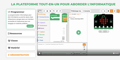 Vittascience est une plateforme éducative pensée pour l’apprentissage du codage, qui propose des outils innovants pour l’enseignement. La plateforme propose plus de 260 ressources allant de la création d’un détecteur de taux de CO2 à la création d’une boussole électronique sur Micro:bit. De plus, la plateforme vous permet de créer des activités, de les attribuer à vos classes et de suivre l’évolution du travail de vos élèves.