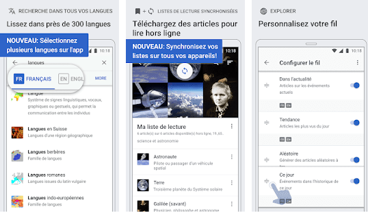 Fonctionnalités : Sauvegarde pour une lecture ultérieure, ou en mode hors-ligne.