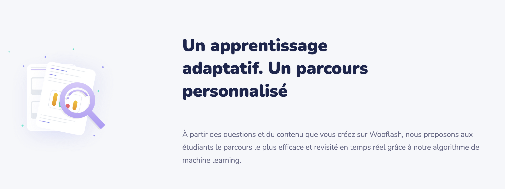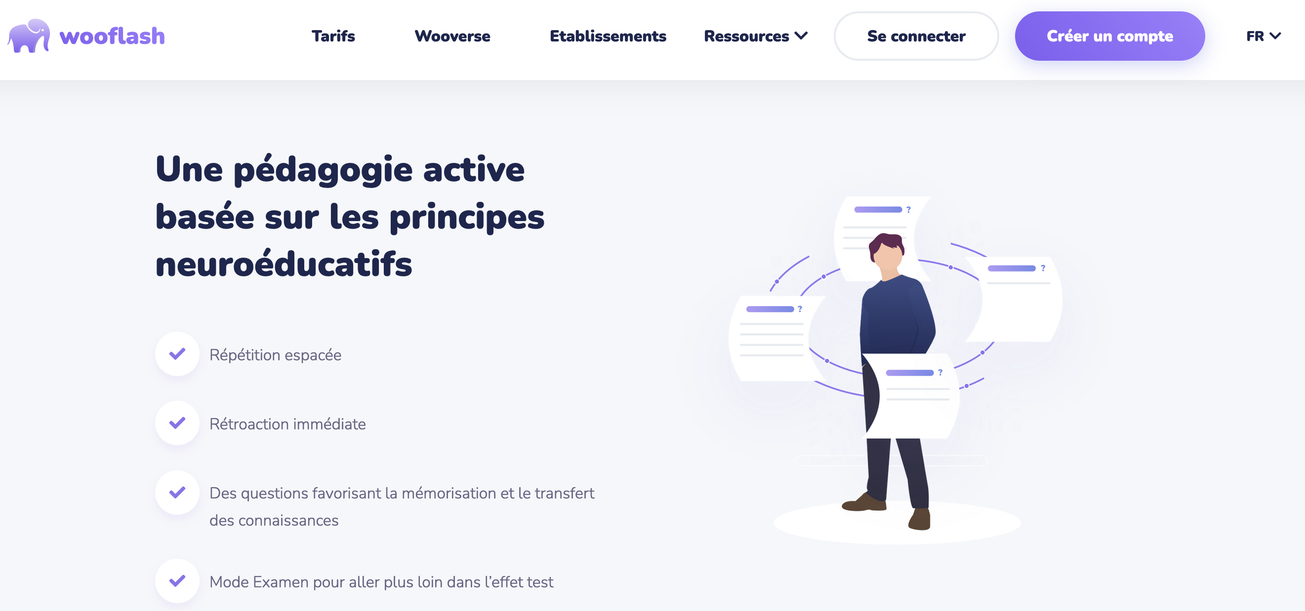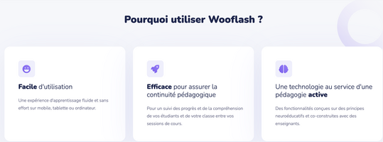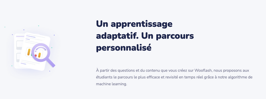 Wooflash est un outil créé pour faciliter la mémorisation des apprentissages. Pour cela, l’application se base sur les avancées des sciences cognitives en la matière et propose un algorithme qui va différencier le parcours de l’apprenant en fonction de ses réponses. Vous pourrez ainsi poser 14 types de questions comme la flashcard classique, le texte à trous, l’audio, le calcul notamment. Cette application permet à l’enseignant de suivre les réponses des élèves et leurs évolutions.