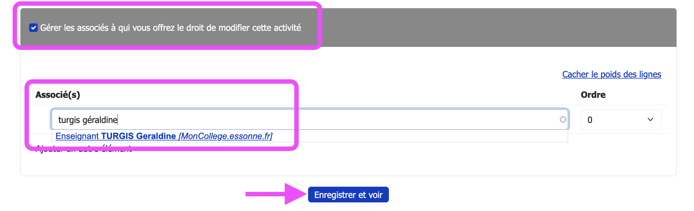 Vous pouvez choisir des associés qui auront des droits de modification de l’activité. Il peut s’agir d’enseignants comme d’élèves, sans restriction d’établissement ni de région.