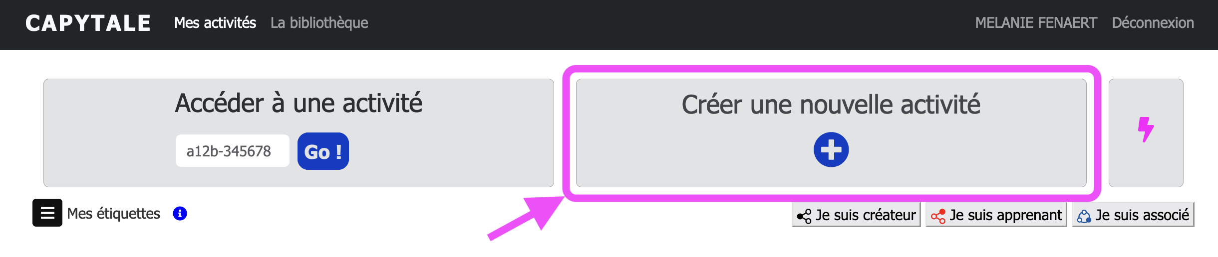 Repérage du bouton permettant de créer un e nouvelle activité dans Capytale.