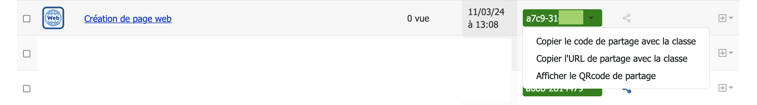 Comme pour les autres modules de Capytale, une activité Web peut être partagée de plusieurs manières aux élèves :