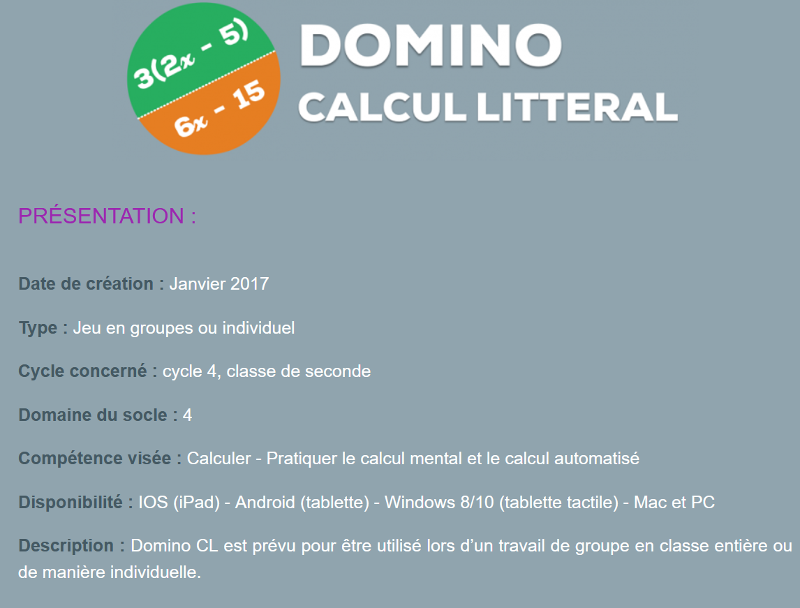 Domino Calcul Littéral