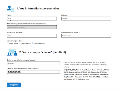 La création de ce compte qui peut servir à tous les élèves d’une école ou d’un établissement, peut être faite par tout enseignant à partir de son compte Éduthèque.