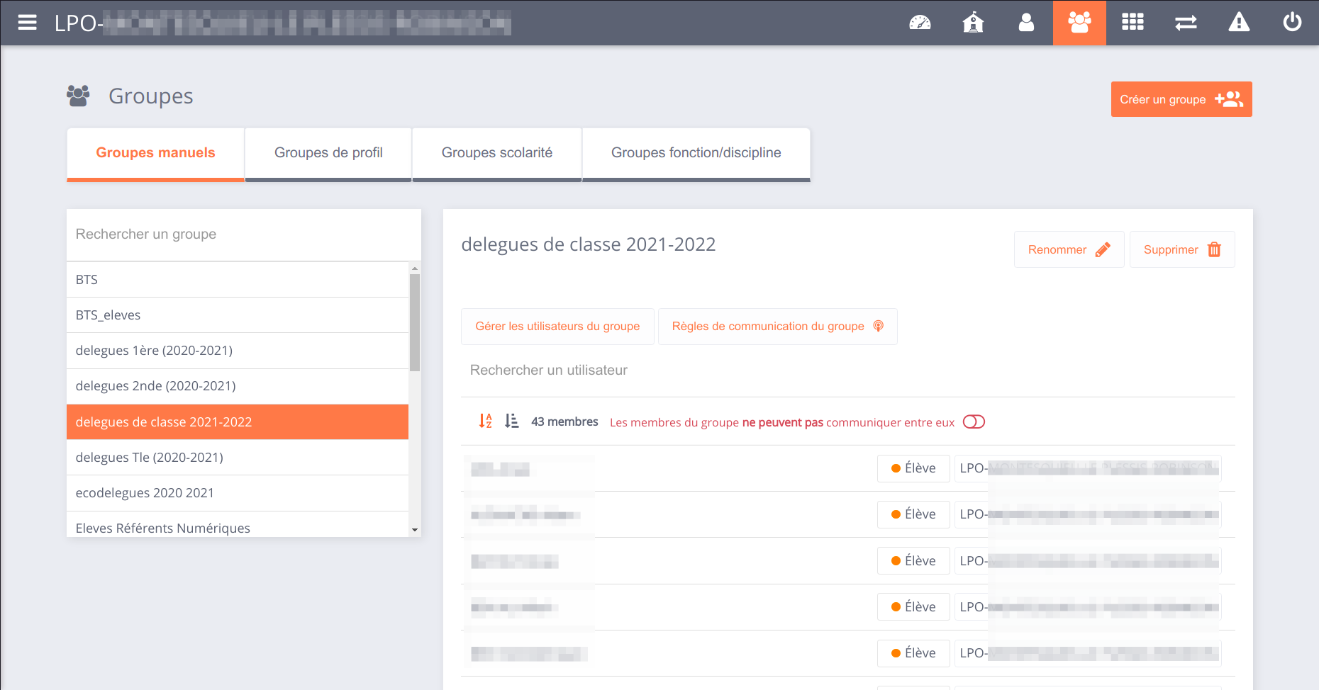 Animer la communauté des élèves délégué du Lycée en créant des groupes