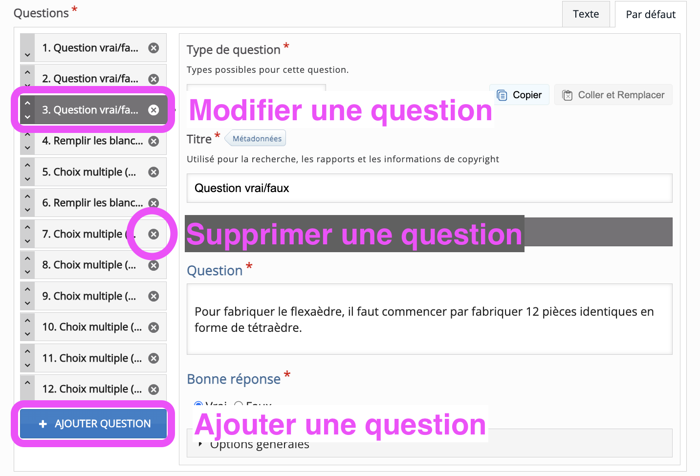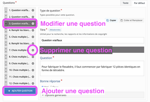 - choisissez la fonction AJOUTER DES ACTIVITÉS (cf visuel Fenêtre de modification du contenu - point N°1)