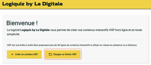 À l’ouverture de Logiquiz, choisissez CHARGER UN FICHIER H5P (cf visuel)