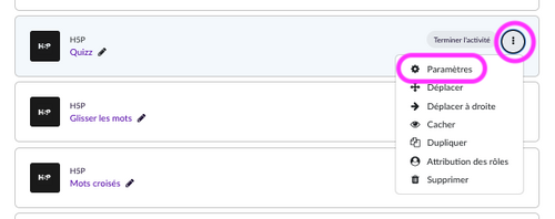 – 2. ParamètresEnsuite vous pouvez effectuer les modifications nécessaires. Sur la capture d’écran suivant, vous trouverez un exemple avec un Quiz
