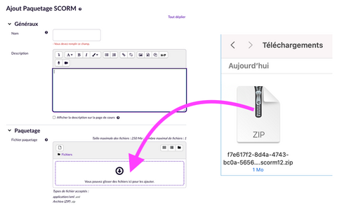 - Faites glisser votre fichier SCORM 1.2 au format ZIP