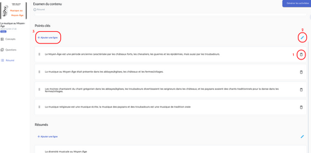 - le résumé : sont ici présentes les grandes lignes mais vous pouvez ajouter des idées supplémentaires qui seront prises en comptes lors de la GÉNÉRATION des activités.
