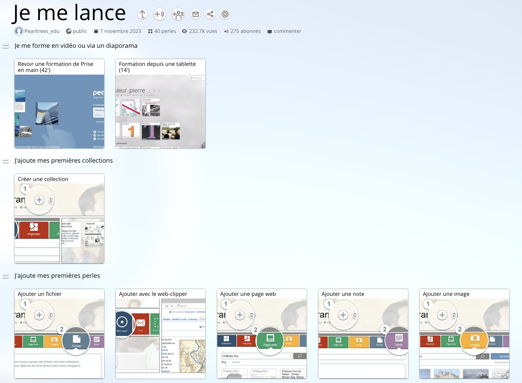 Pearltrees "Je me lance" regroupe un ensemble de tutoriels d’aide à la prise en main de la ressource.