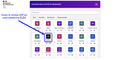 choisir le module H5P sur votre plateforme ÉLÉA