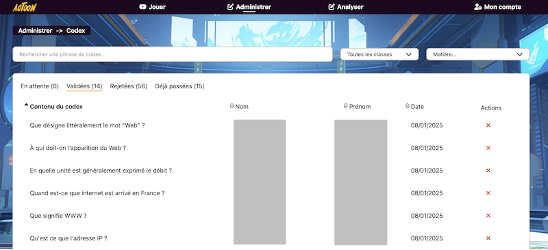 Les élèves doivent se connecter une première fois à l’application pour pouvoir apparaitre dans leur classe. L’enseignant retrouve ensuite ses classes directement dans l’interface d’Actoon.