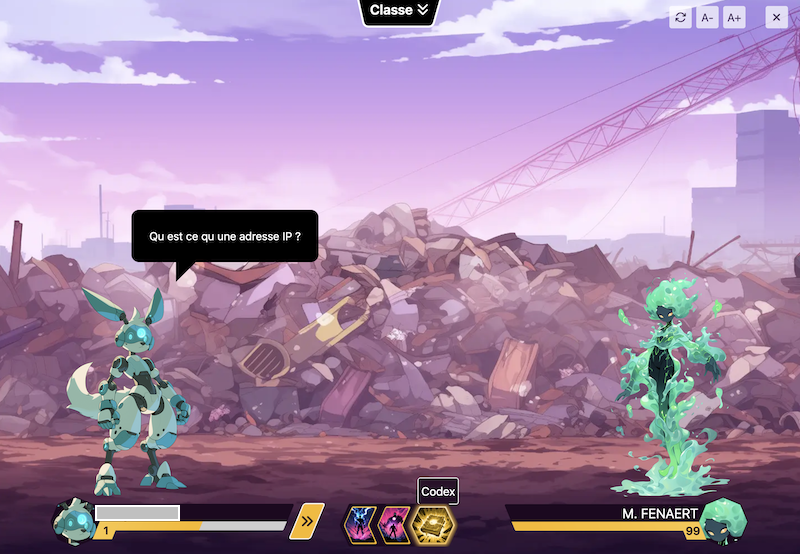 En classe, quand le professeur lance le Codex, une question apparaît de manière aléatoire :