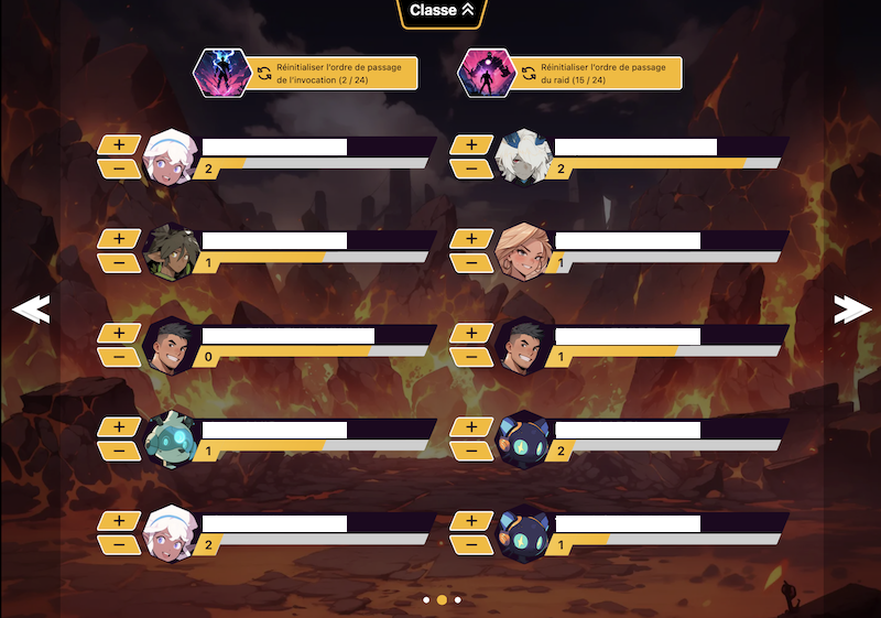 10 élèves représentés par leur avatar, et possibilité pour l’enseignant d’augmenter ou diminuer leurs points d’XP