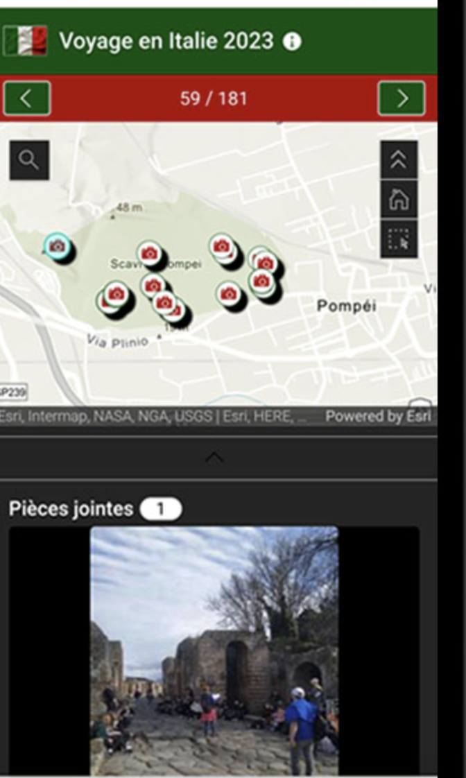 Le collège Jules Ferry de Rozoy-sur-Serre a utilisé des solutions numériques d’ArcGIS spécialisées en géographie pour accompagner son voyage scolaire en Italie.Dans un premier temps, grâce à la solution Quick capture, les élèves ont pu prendre des photos et les associer à des point GPS pour créer leurs parcours de voyage.