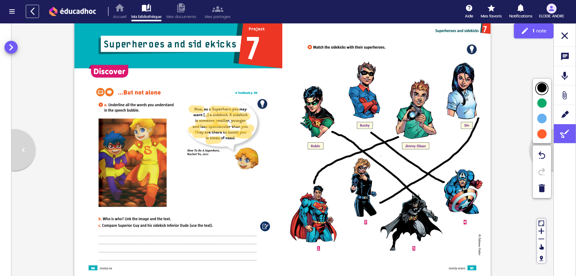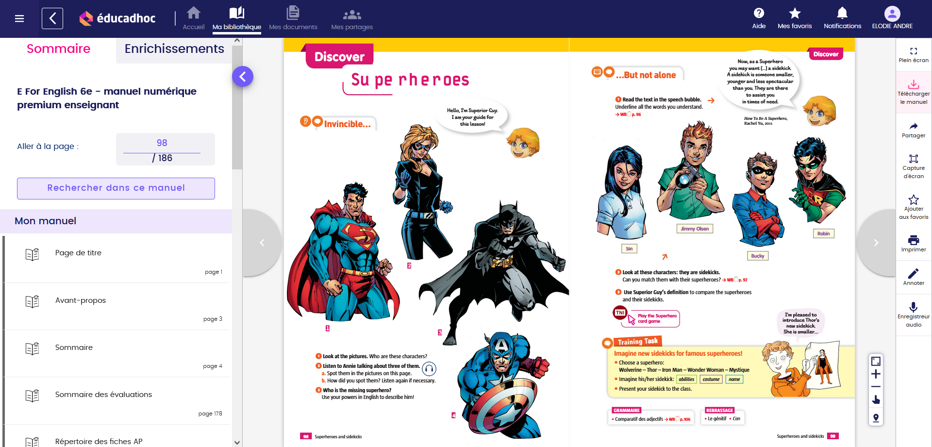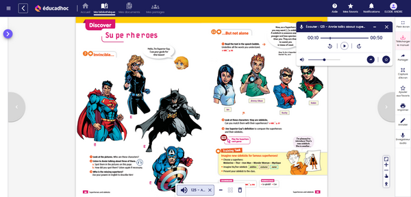 Elodie André, enseignante d’anglais dans le Val d’Oise (95), utilise Educadhoc comme un manuel numérique avec la même mise en page que le manuel papier ce qui facilite le repérage pour ses élèves.