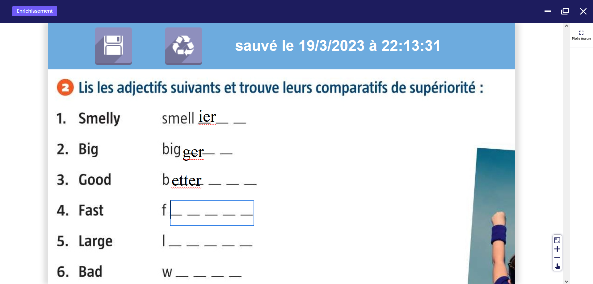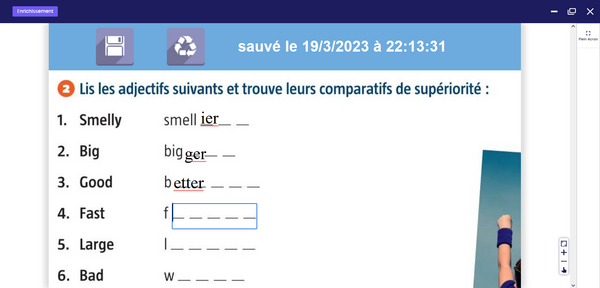 De nombreux exercices variés sont proposés à l’élève et il peut les réaliser directement sur son support numérique.