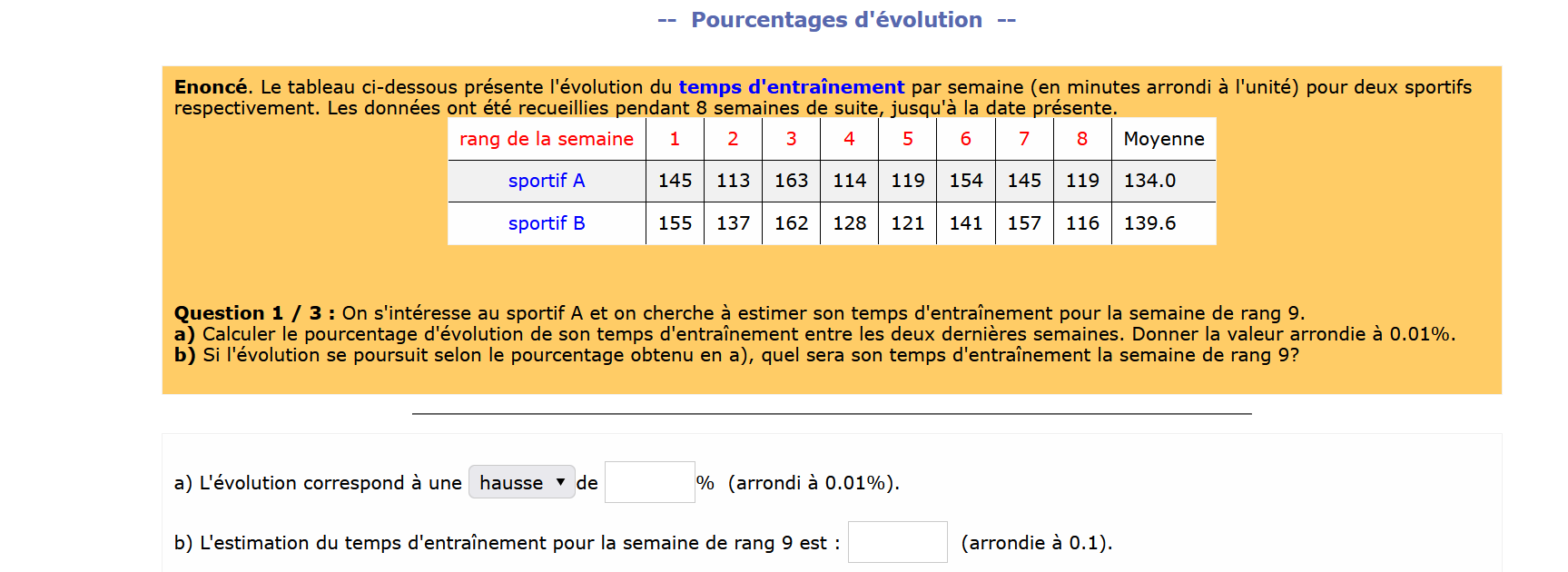 En collège, au cycle 4, les élèves sont amenés à calculer des pourcentages d’évolution. Sur la plateforme Euler-Wims, de nombreux exercices sont présents afin de permettre aux élèves de s’entrainer.