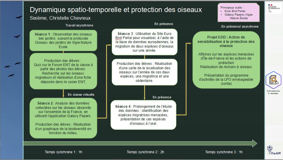 Cette séquence interdisciplinaire propose d’utiliser deux bases de données sur la répartition spatiale et temporelle des oiseaux pour traiter du lien entre la biodiversité et les saisons en Sixième, en rendant acteur l’élève dans l’analyse des données et dans la proposition d’actions en faveur de la protection des oiseaux.