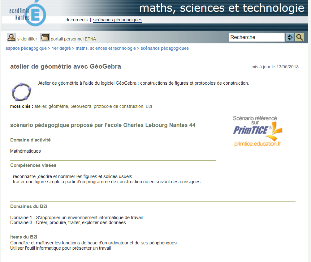 En cliquant sur l’image ci-dessous vous accéderez à un exemple d’utilisation de GeoGebra lors d’un atelier de géométrie.