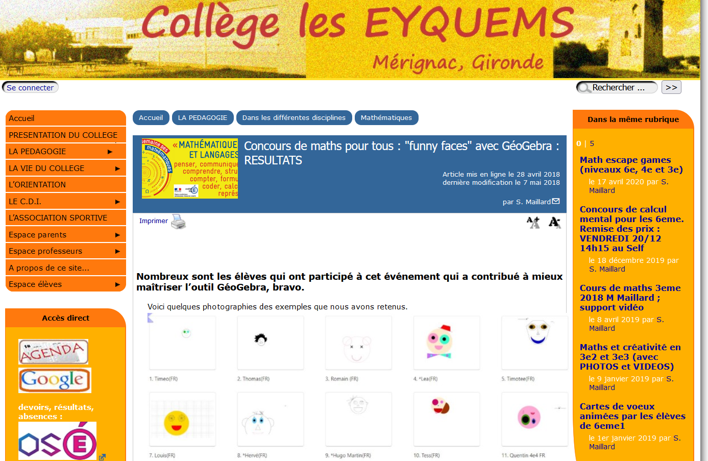 En cliquant sur l’image ci-dessous vous accéderez à un exemple d’utilisation de Géogébra dans un collège.