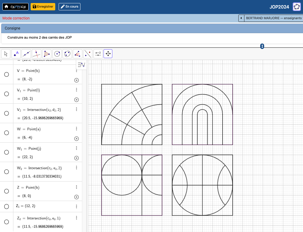 Au cours de la séance, les élèves devront reproduire au moins deux de ces carrés. Pour ce faire, ils doivent accéder à l’activité préalablement préparée avec le logiciel de géométrie dynamique GeoGebra.